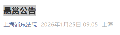 上海浦东法院发布悬赏公告